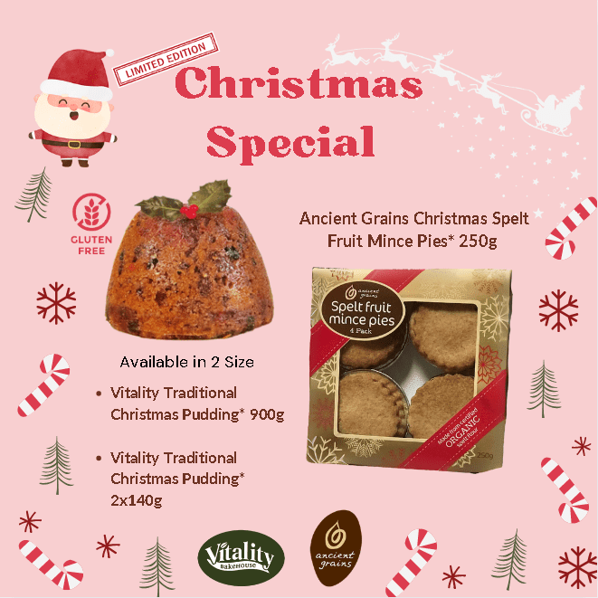 Spelt Mince Pies and Vitality Puddings are back.